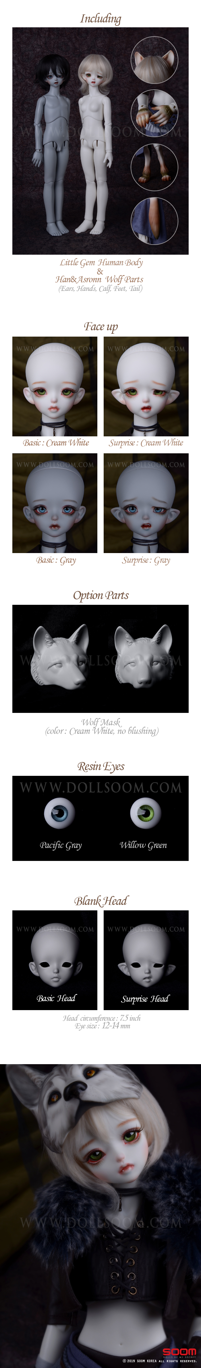 * The eyes used for the photo are 12mm for the Gray skin, 14mm for the Cream White skin.