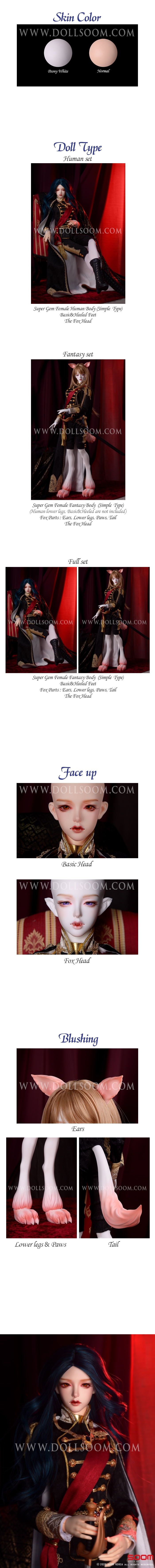 – Full Set : Super Gem Female Fantasy Body(Including Basic feet&Heeled feet), The Fox head, Fox part(Ears, Lower legs, Paws, Tail)