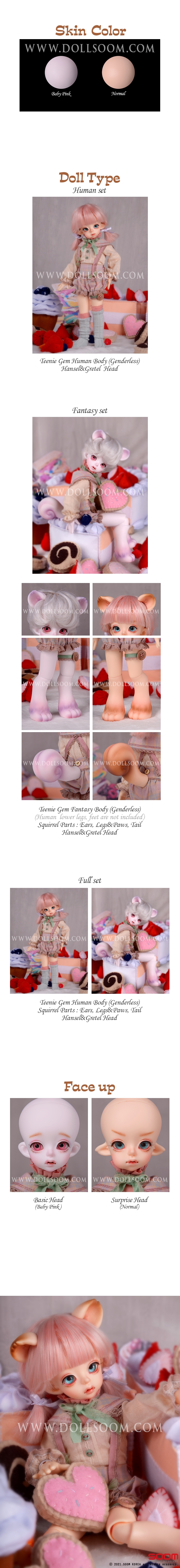 – Full Set : Hansel & Gretel Head、Teenie Gem 中性ボディ、Squirrel(リス)パーツ(耳、脚、尻尾)