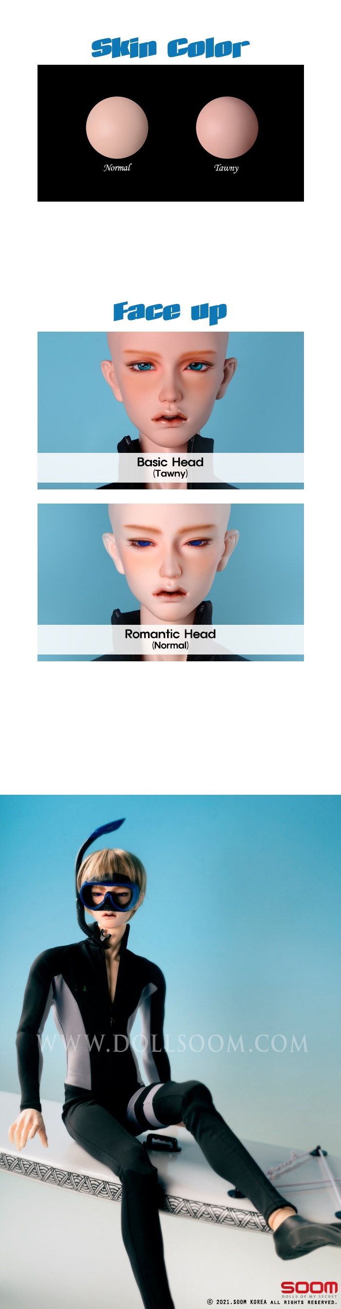 – 페이스업(Face up) : 베이직 헤드(Basic Head) / 로맨틱 헤드(Romantic Head) / 베이직+로맨틱 헤드(Both Head)